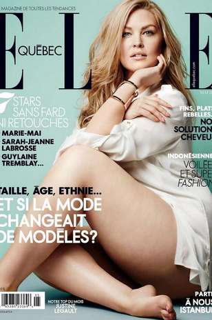 A Elle canadense trouxe a modelo na capa da edição de maio. Sentada, ela não quis disfarçar medidas ou as formas. "O fato de ter recebido apenas mensagens positivas sobre a capa me deixou verdadeiramnte feliz. Parece que as pessoas não estão mais tão chocadas em ver curvas em fotos. Ótimas notícias", escreveu em sua página no Facebook